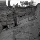 Brick retaining wall along East Rim road during repairs. ; ZION Museum and Archives Image 002.05.01-13of19 ; ZION 15933