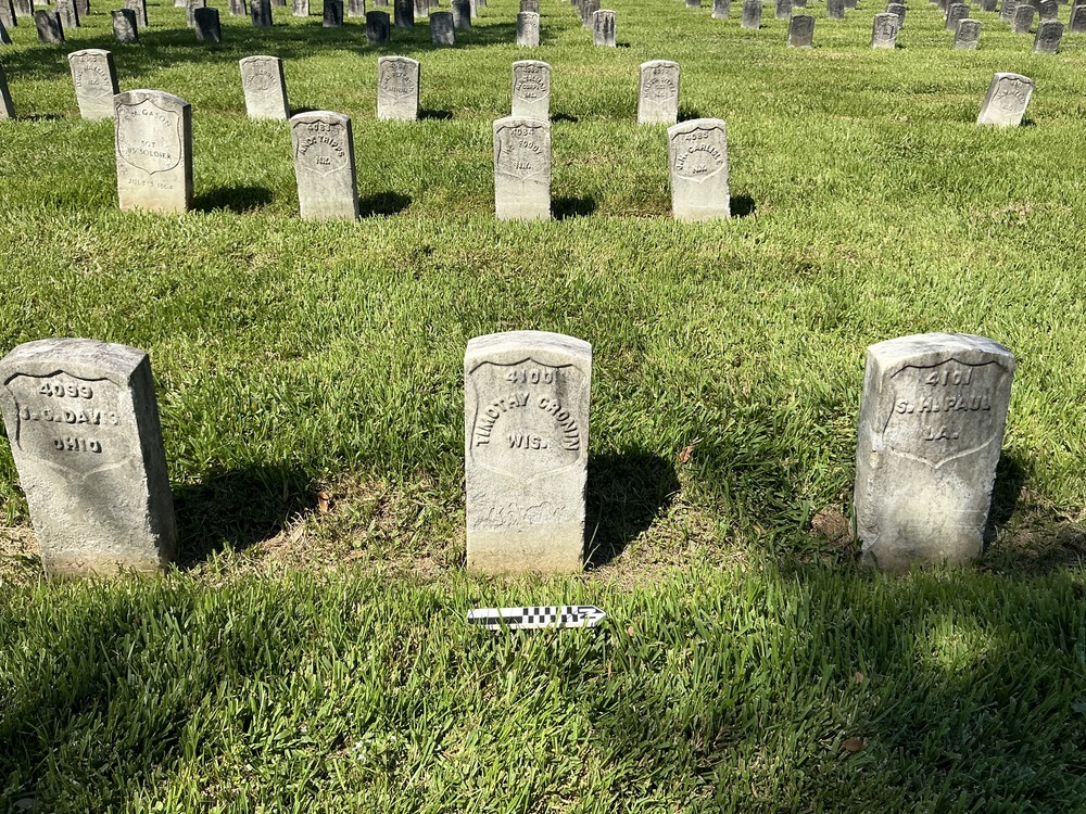 Headstone at Chalmette National Cemetery. Grave ID: 4100. Located at Section 52, Row 4, Site Number 15. Photo taken as part of the 2024 condition assessment and inventory.