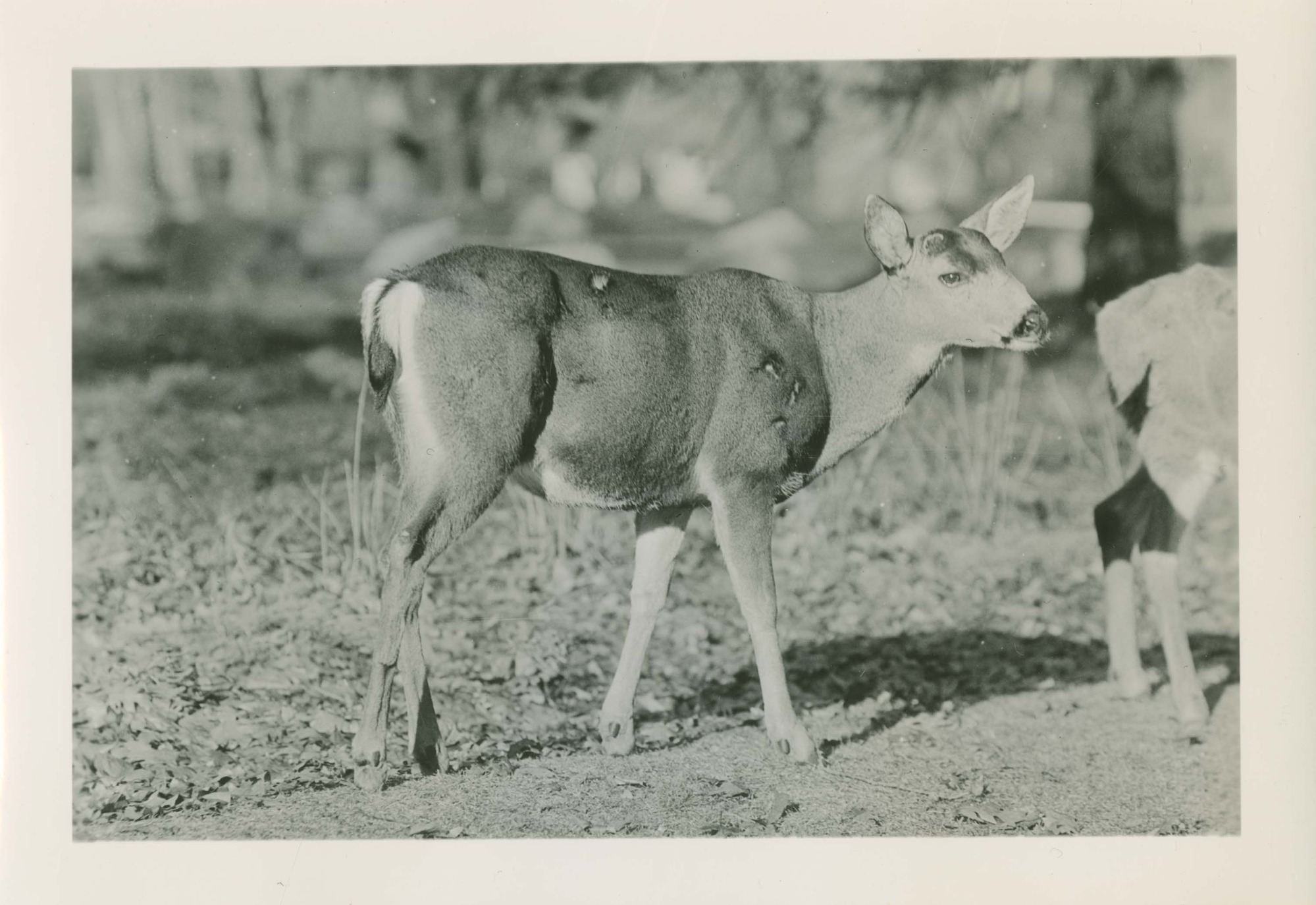 California Mule Deer. Big buck; antlers just shed. Locality: Yosemite National Park. Negative #: 772. Location of Negative: Region Four Headquarters. [This information comes from the reverse of the envelope for this negative number.].