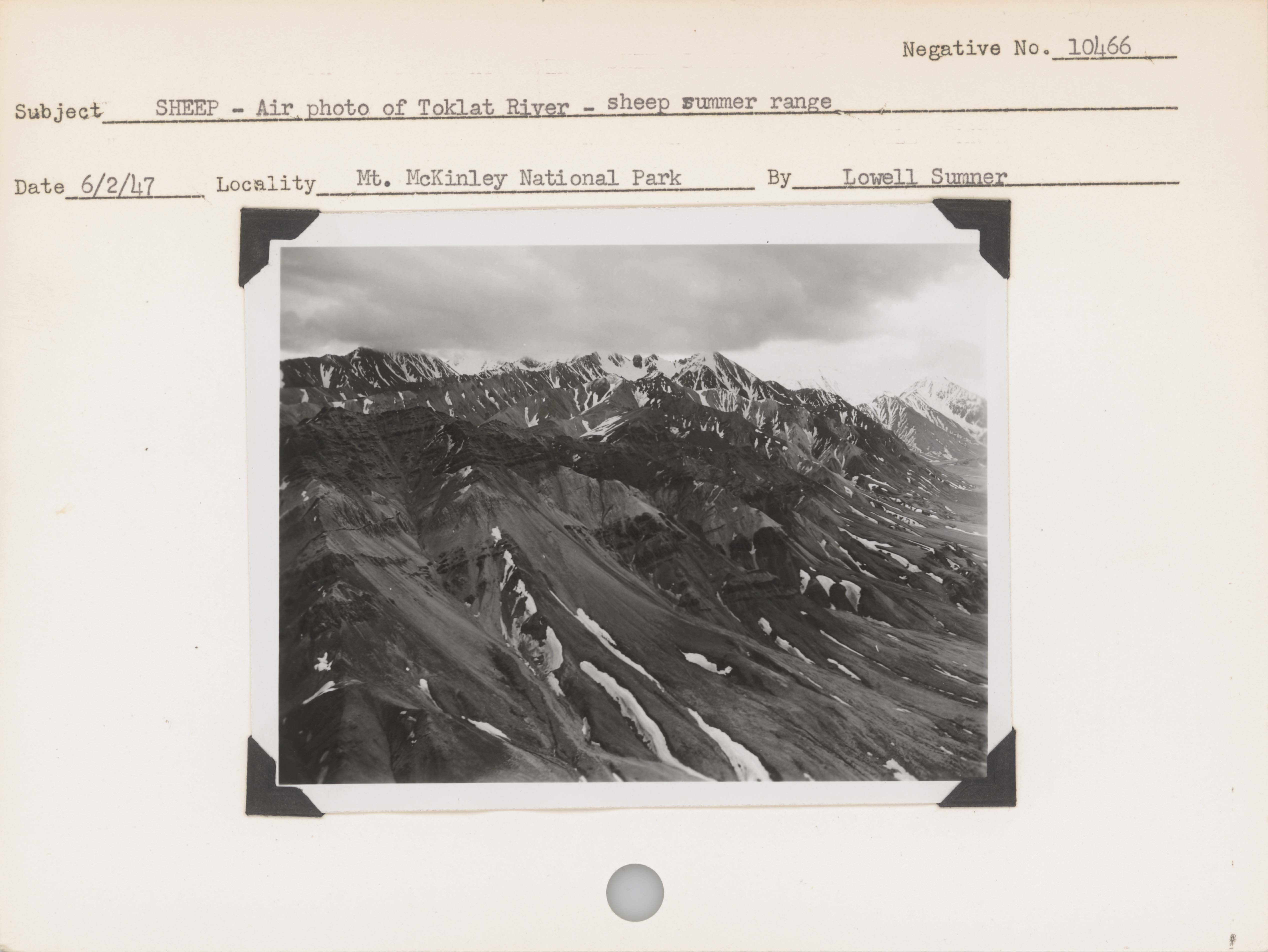 Sheep--Air photo of Toklat River--Sheep summer range. Locality: Mount McKinley National Park [Denali National Park & Preserve]. Negative #: 10466