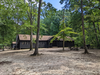 Large wooden building sits among trees in a green forest