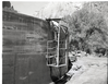 Crews upgrading water system at Temple of Sinawava - scaffolding up cliff face to spring. ; ZION Museum and Archives Image 006_04_157 ; ZION 15933