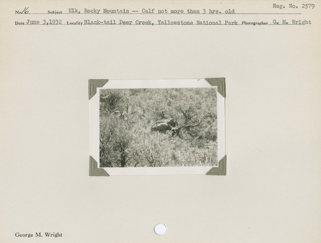 Elk, Rocky Mountain – Calf not more than 3 hours old. Negative #: 2579. Locality: Black-tail Deer Creek, Yellowstone National Park.