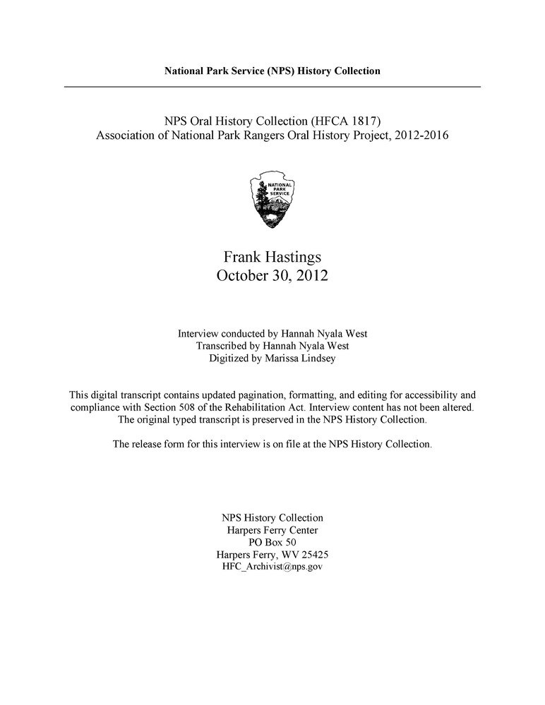 Transcript of an oral history interview with Frank Hastings.
