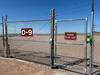 About an acre of gravel surrounded by a chain link fence. Signs for “D-9” and a reminder to “please close gate” hang from the chain link.