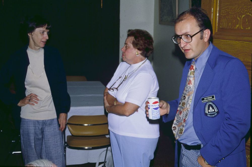 Park staff meember speaking with guests at an unidentified JEFF special event. ; September, 1977