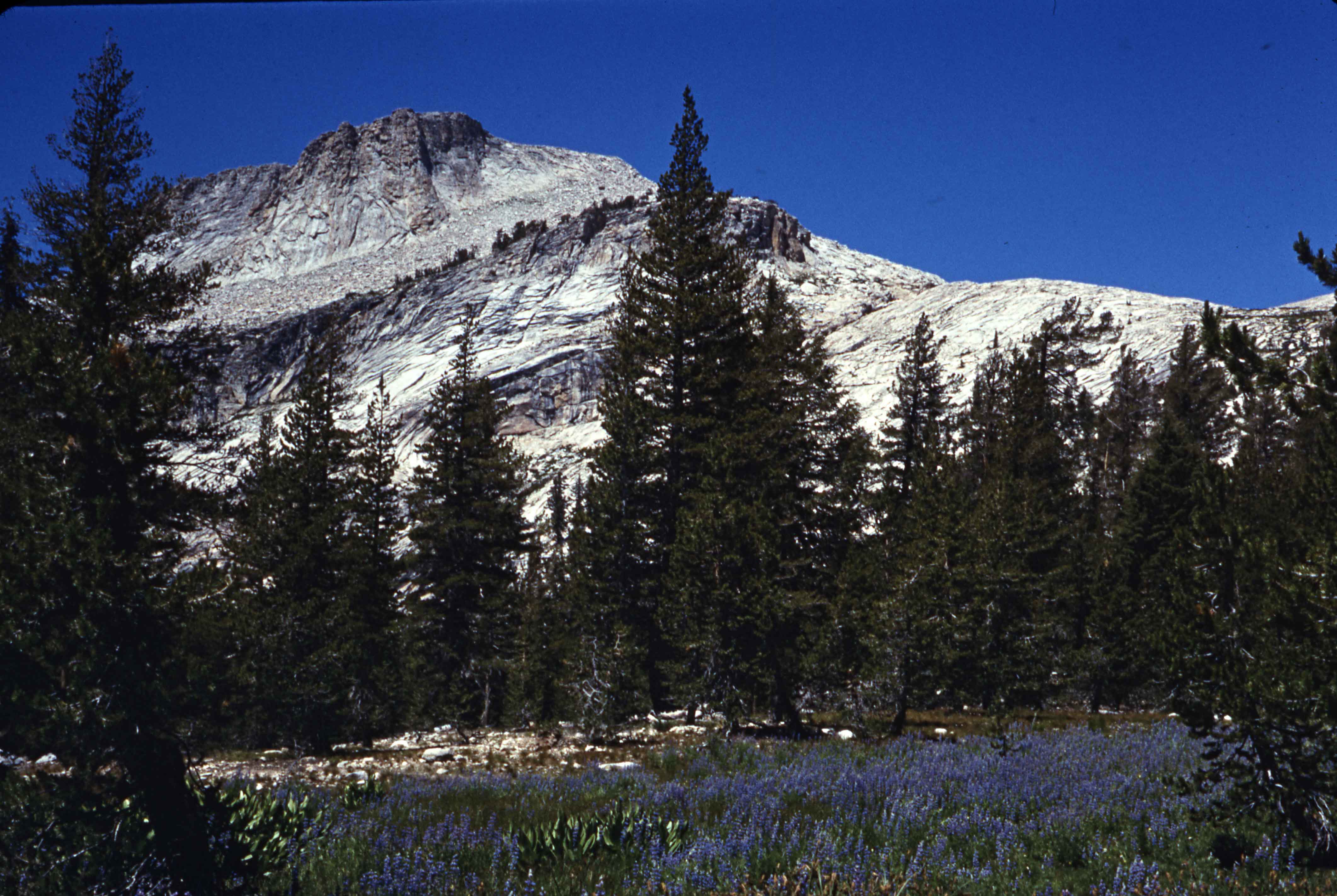 Field of Lupin [Lupine] with side of Mt. Hoffman. Rowaland Gaal. Mountains. Yosemite Original. A9-d-0. A-30-d-6. A-24-17-030