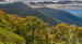 Crescent Rock Overlook, backlit mountains in the background and the trees beginning to turn in the foreground.