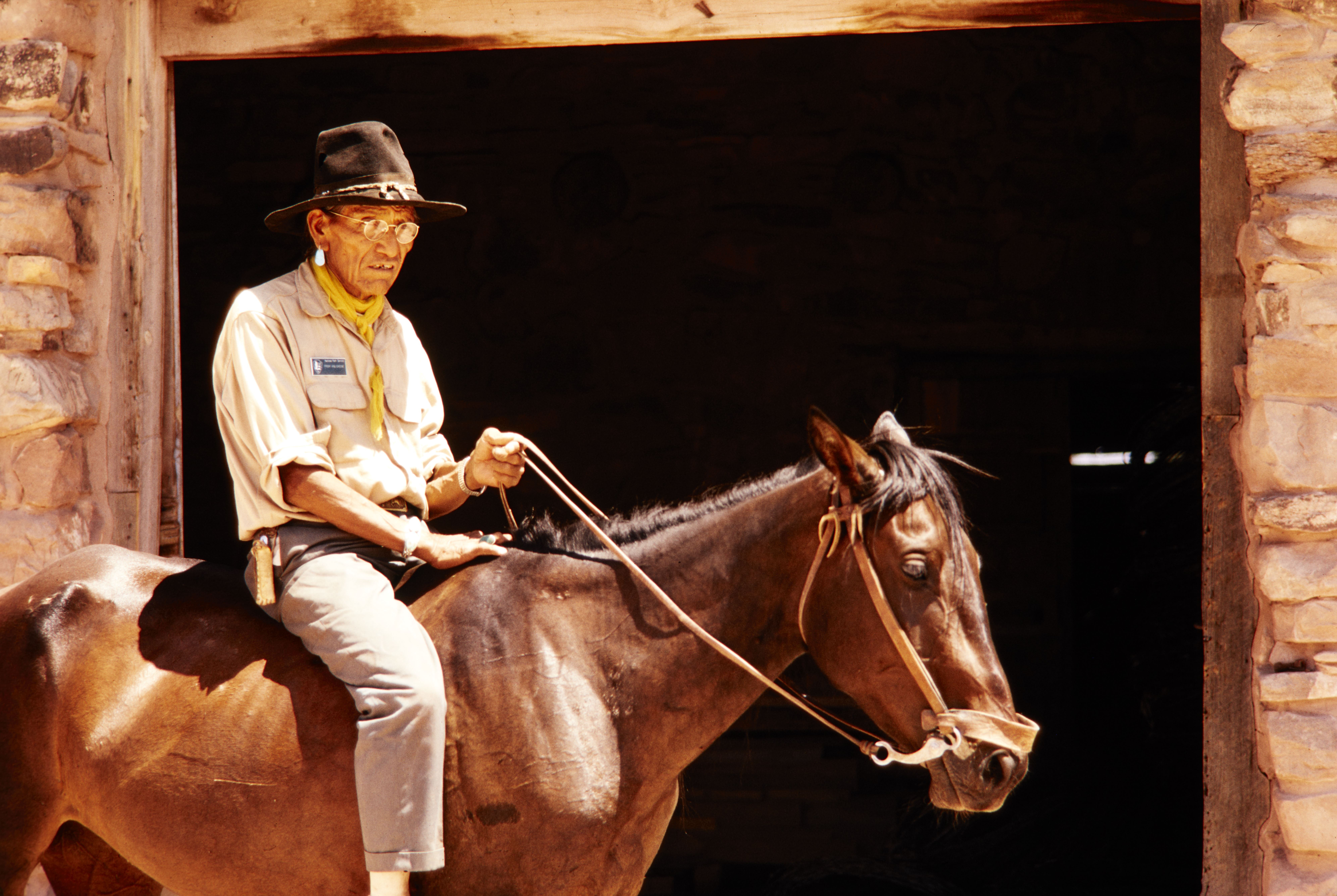 Friday Kinlichini on horseback at Hubbel Trading Post National Historical Site. Image number 69-431-50.