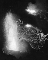 Erupting fountains inside Halemaʻumaʻu crater from its southwest rim, July 11th, 1961