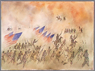 Union troops advancing during the Battle of Bull Run (Manassas).