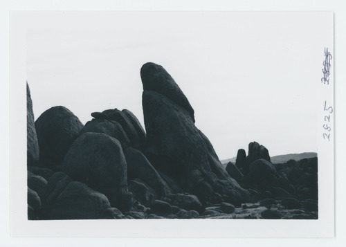 Black and white image of Belle Mt. area, campground, and rock formations