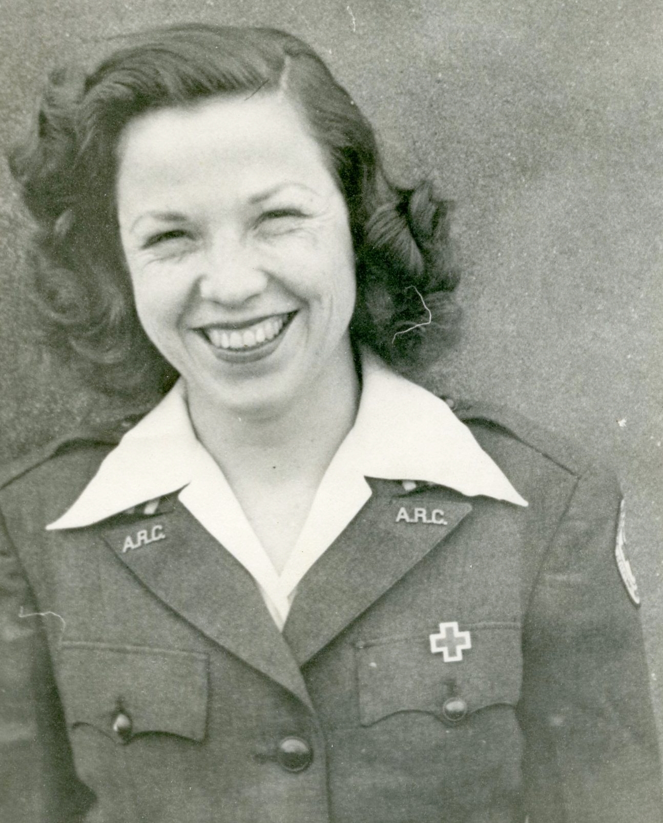Lucille Caroline Lambert as a red-headed member of the American Red Cross, circa 1943-45.