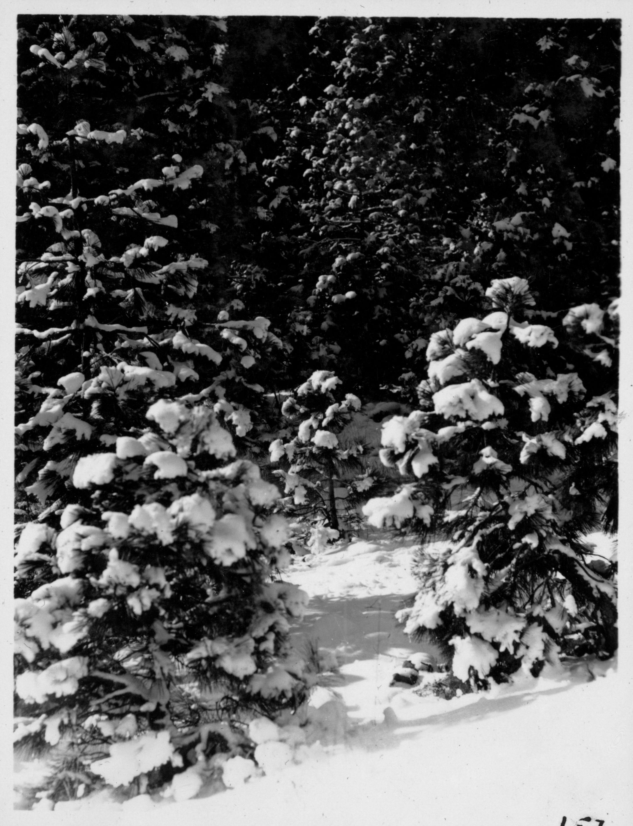 Arthur G. Holmes Collection Album 5: Snow on trees at LAVO headquarters