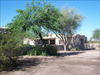 Damaged mesquite and palo verde trees Admin building northside
