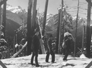 Elwha Winter Game Study Crew working in vicinity of Happy Lake Ridge. Elwha River. H.N. Cory, Assistant Ranger Leslie Woods and a CCC Enrollee. Olympic National Forest.
