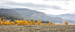 Yellow cottonwood trees stand in a large valley with a mountain in the background