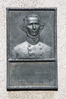 4' x 2' x 6' high, two-piece granite monument with 25" x 39" bronze relief portrait attached to front. Relief panel has inscription and decorative border.