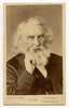 Portrait of Henry Wadsworth Longfellow. Head and shoulders visible against plain background. Longfellow wears formal attire and has chin-length white hair and a full white beard. He turns his head slightly to his right and leans his chin on his raised right hand. Inscription: "Henry W. Longfellow / 1870." signed in ink verso by Henry Wadsworth Longfellow (signature). Photographer stamp includes "Elliott & Fry / Copyright / 55, Baker Street / Portman Square. W. [London]." underneath image and verso. Thomas de Valcourt's instructions to return the photograph to the House have been erased. Notes: 1868. Henry Wadsworth Longfellow sat for Fry by 23 July 1868 as he sent Julia Margaret Cameron one of their photographs of him (#2681, fn.2, Letters, ed. Hilen, V). The inscription indicates that he was giving these photographs in 1870. The Elliott & Fry stamp verso differs from the others so perhaps this carte-de-visite was produced slightly later. Associated Materials: 3007-1-2-1-41 and -42 similar in pose.