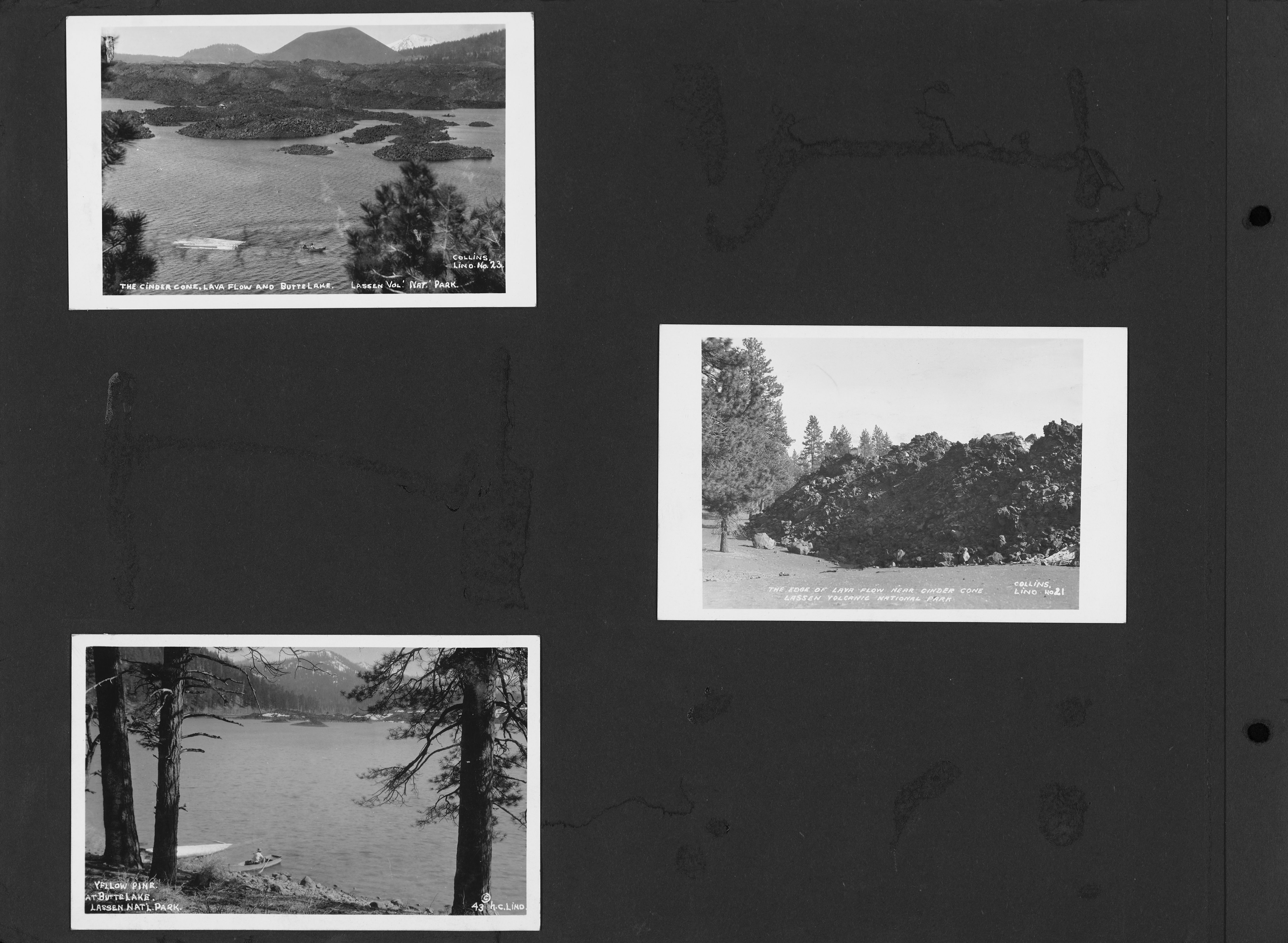 Administrative Collections: Album 3 (Scenics) -Henry Lind photographic postcards of Cinder Cone, Butte Lake, and lava flow. See LAVO PH Coll 26 for complete set of Lind postcards