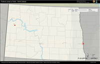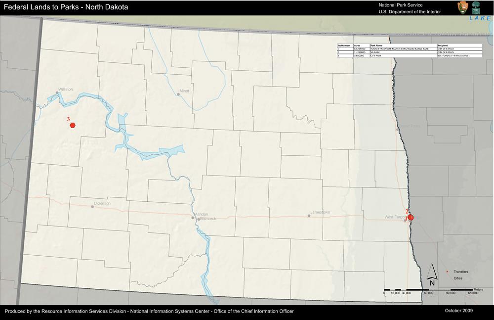 This is a state map of all transfers of federal lands to the state of North Dakota.