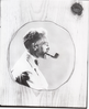 Portrait of Nelson Durand superimposed on a piece of wood [for a plaque?].