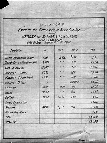 50977.BA#001--Estimate for Elimination of grade crossings through Newark from Bathgate Place to City Line Depression [1908.12.29]