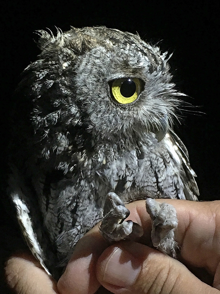 Western Screech Owl captured during mist netting for bats in Pinnacles National Park