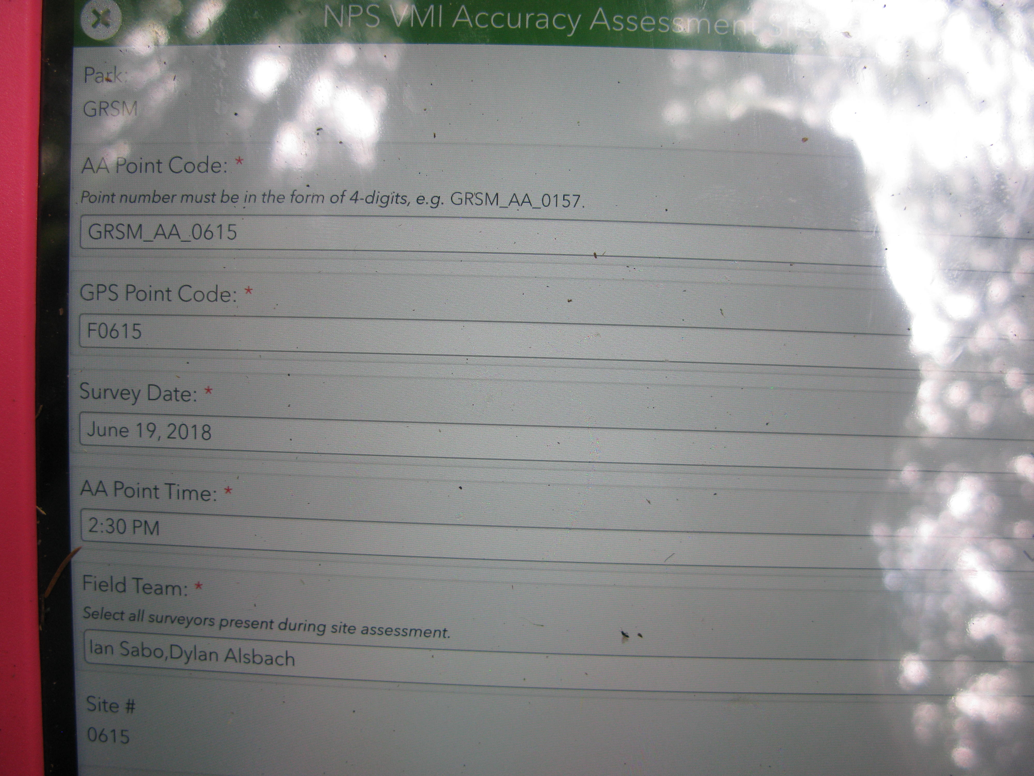 GRSM Accuracy Assessment. Plot Code: GRSM_AA_0615_1