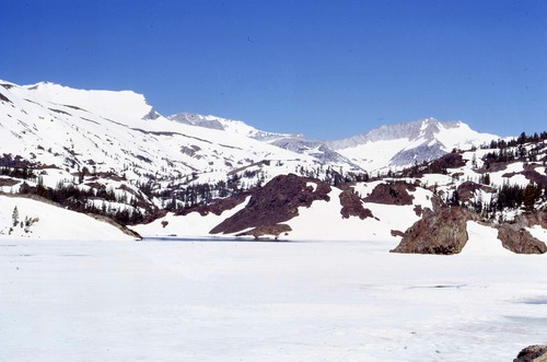 Mt. Conness and Lake Ellery. Hood [Mary V. Hood]. 6/28/67 [1967 June 28]. A2227. A-29-e-4. Mountains. Yosemite Original. A-24-10-039