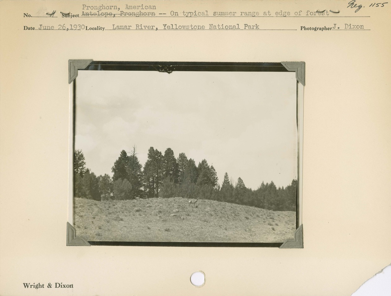 Pronghorn, American –On typical summer range at edge of forest. Locality: Lamar River, Yellowstone National Park. Negative #:1155