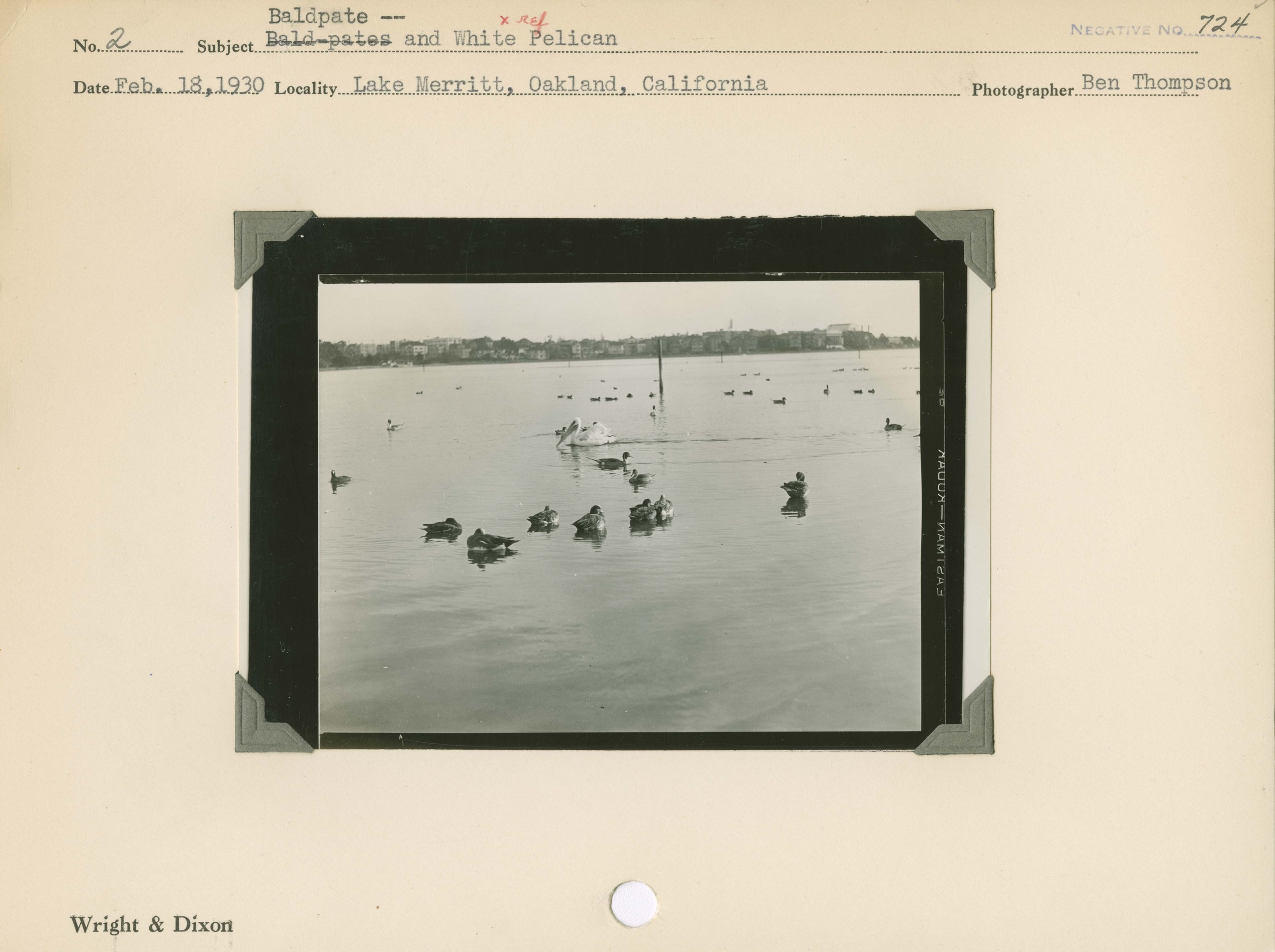 Baldpates -- and White Pelican. Locality: Lake Merritt, Oakland, California. Negative #: 724