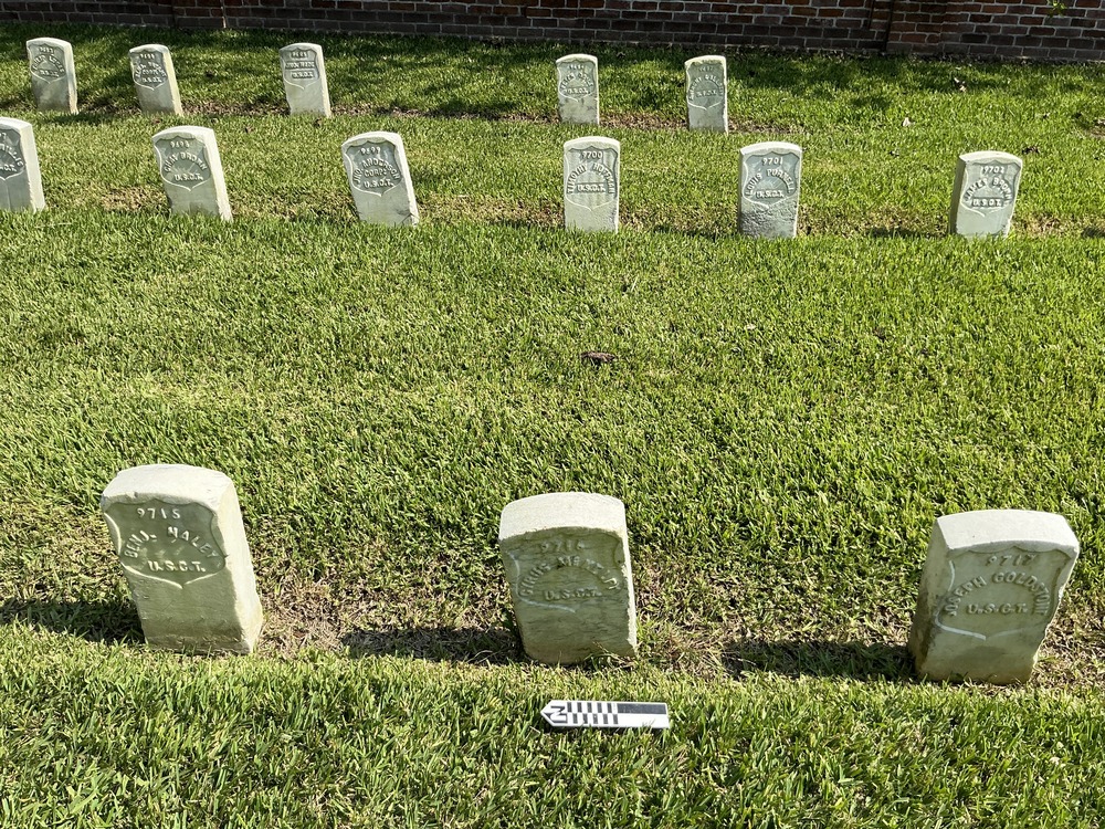 Headstone at Chalmette National Cemetery. Grave ID: 9716. Located at Section 119, Row 4, Site Number 8. Photo taken as part of the 2024 condition assessment and inventory.