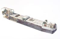 Partial cutaway illustration depicts a typical canal boat revealing the living quarters (family cabin), the steering compartment, part of the cargo area below the hatch covers, hay house compartment, and the mule shed. National Park Service; Harpers Ferry Center; Commissioned Art Collection. Artist Steven N. Patricia.