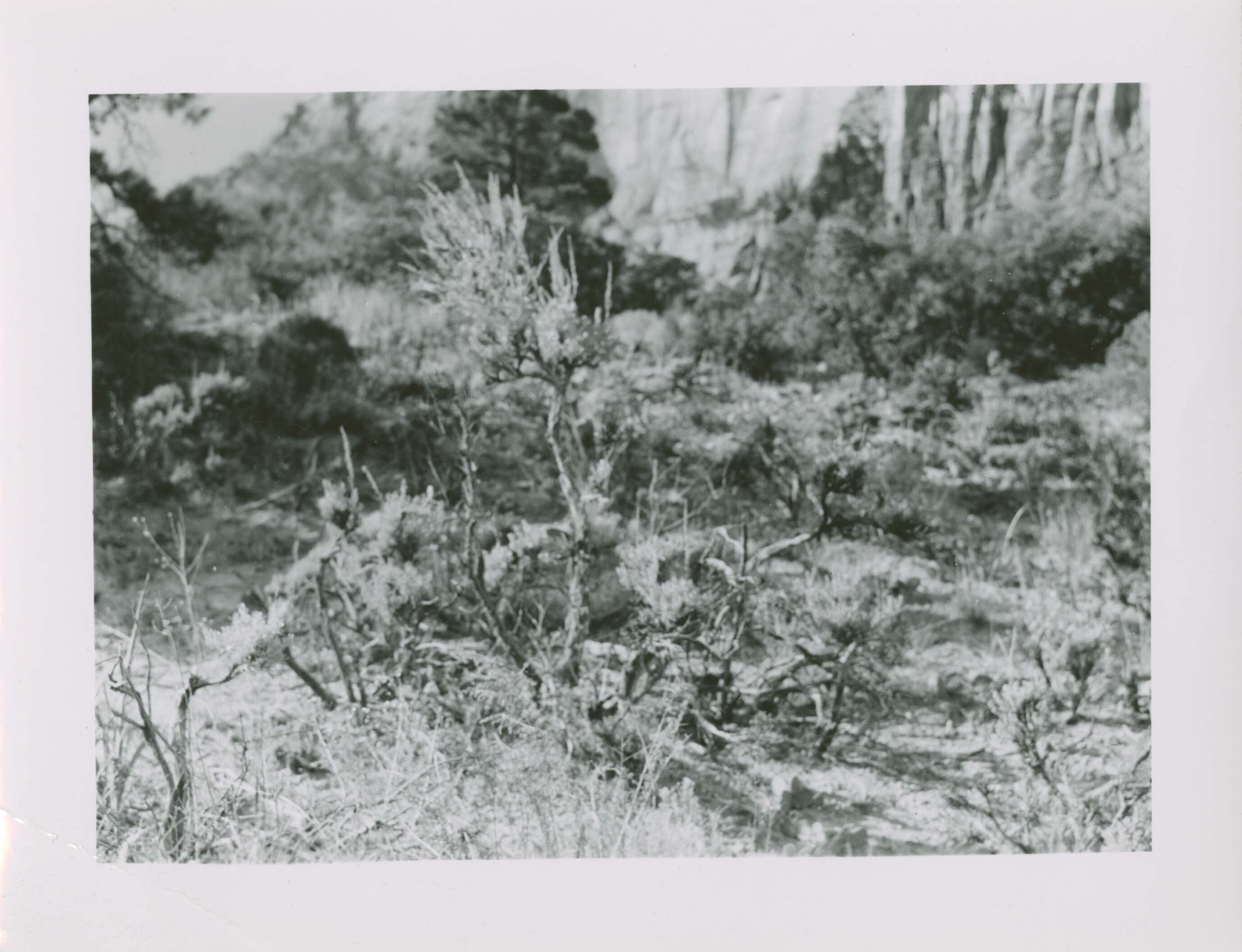 Sage damaged by deer. Bench on west side of Zion Canyon, south of Birch Creek. Locality: Zion National Park. Negative #: 11687
