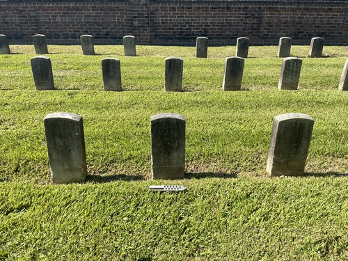 Headstone at Chalmette National Cemetery. Grave ID: 7443. Located at Section 90, Row 4, Site Number 6. Photo taken as part of the 2024 condition assessment and inventory.