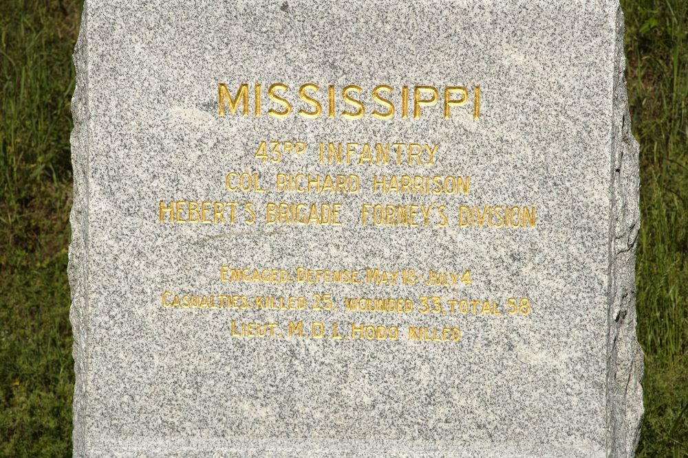 52" x 26" x 72", the monument is a simple rectangular slab of rock-faced gray granite. The upper portion of the front is polished and carries an inscription relating the unit's campaign record and casualties.