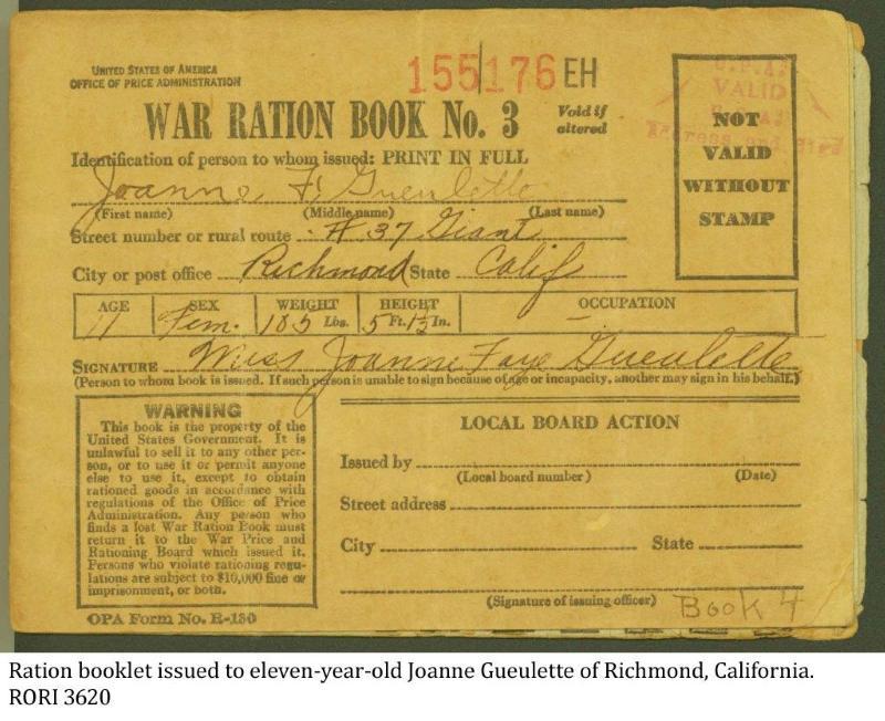 Ration booklet, Rosie the Riveter WWII Home Front National Historical Park, 2016.