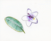 drawing of a 5 petaled white flower and one green leaf