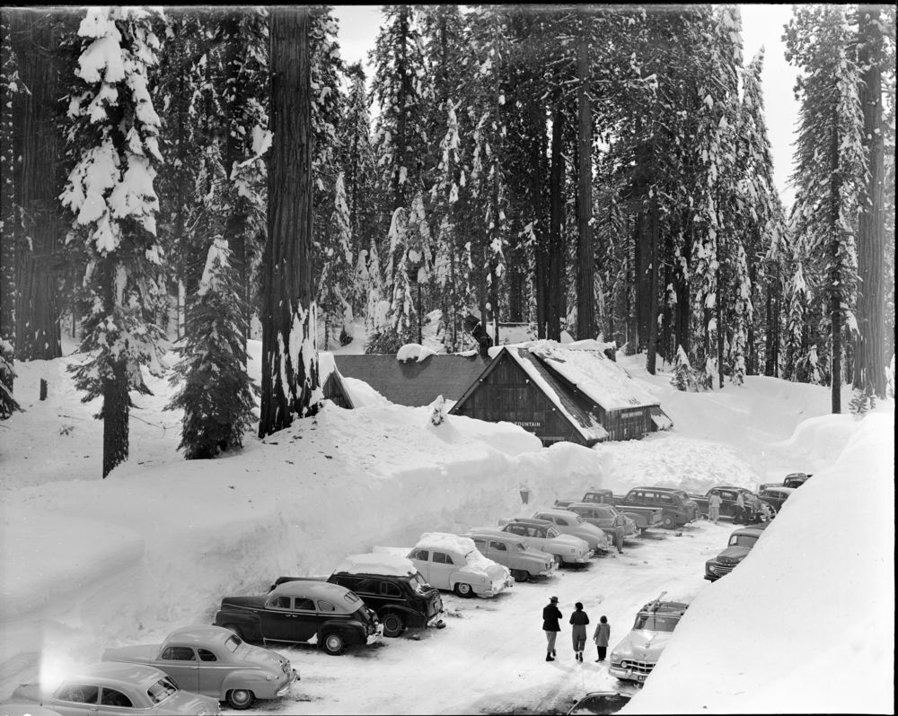 Howard Stangner, Giant Forest, SNP, Record Heavy Snows, Giant Forest Coffee Shop in deep snow. Concessioner Facilities, Vehicular use. 520323.