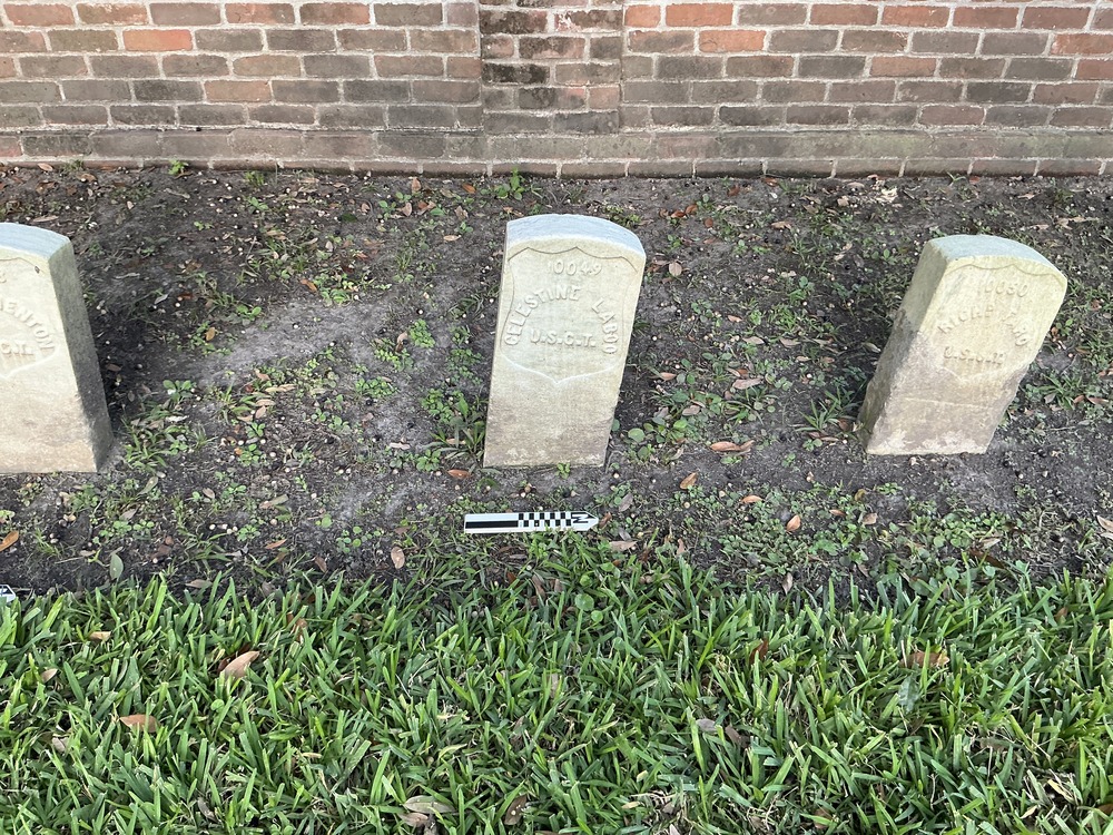 Headstone at Chalmette National Cemetery. Grave ID: 10049. Located at Section 123, Row 6, Site Number 7. Photo taken as part of the 2024 condition assessment and inventory.