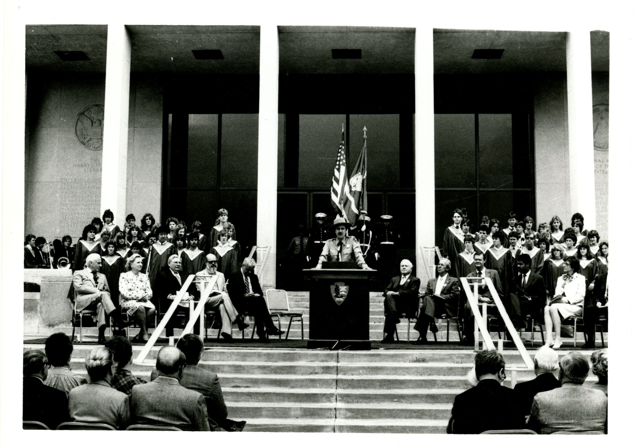 Black and white photos of HSTR dedication HST library and HST home