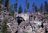 Natural bridge and person standing on it
