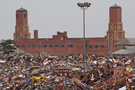 DSNY removed over 420,000 tons of storm debris. Much of this was staged in the Jacob Riis Park parking lot. Courtesy DSNY.