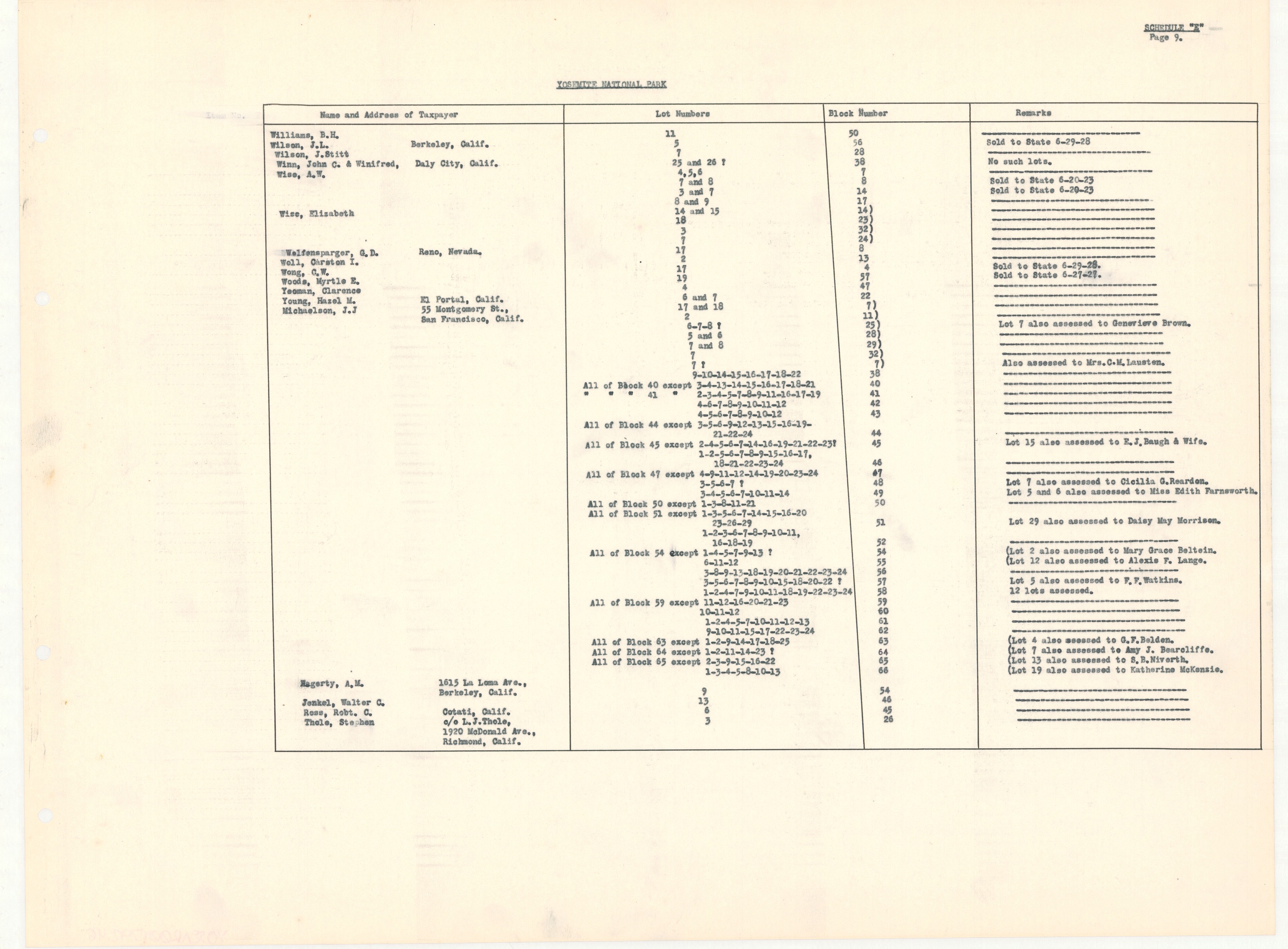 Person: Archivist Organization: US National Park Service Address: Yosemite National Park Archives, PO Box 700-W, El Portal, CA 95318 Email: yose_archives@nps.gov