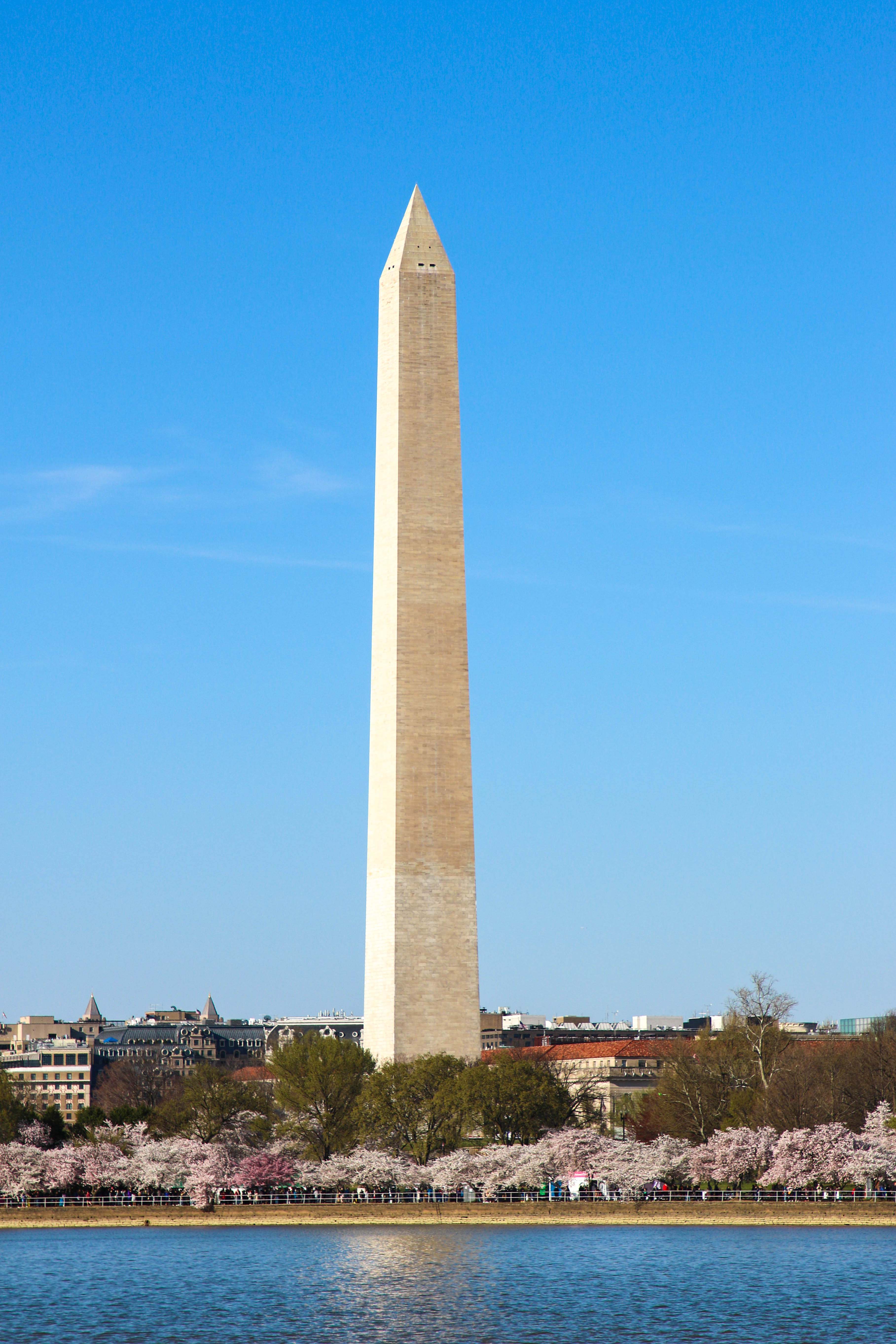 Washington Monument across the Tidal Basin while the cherry blossoms are in bloom