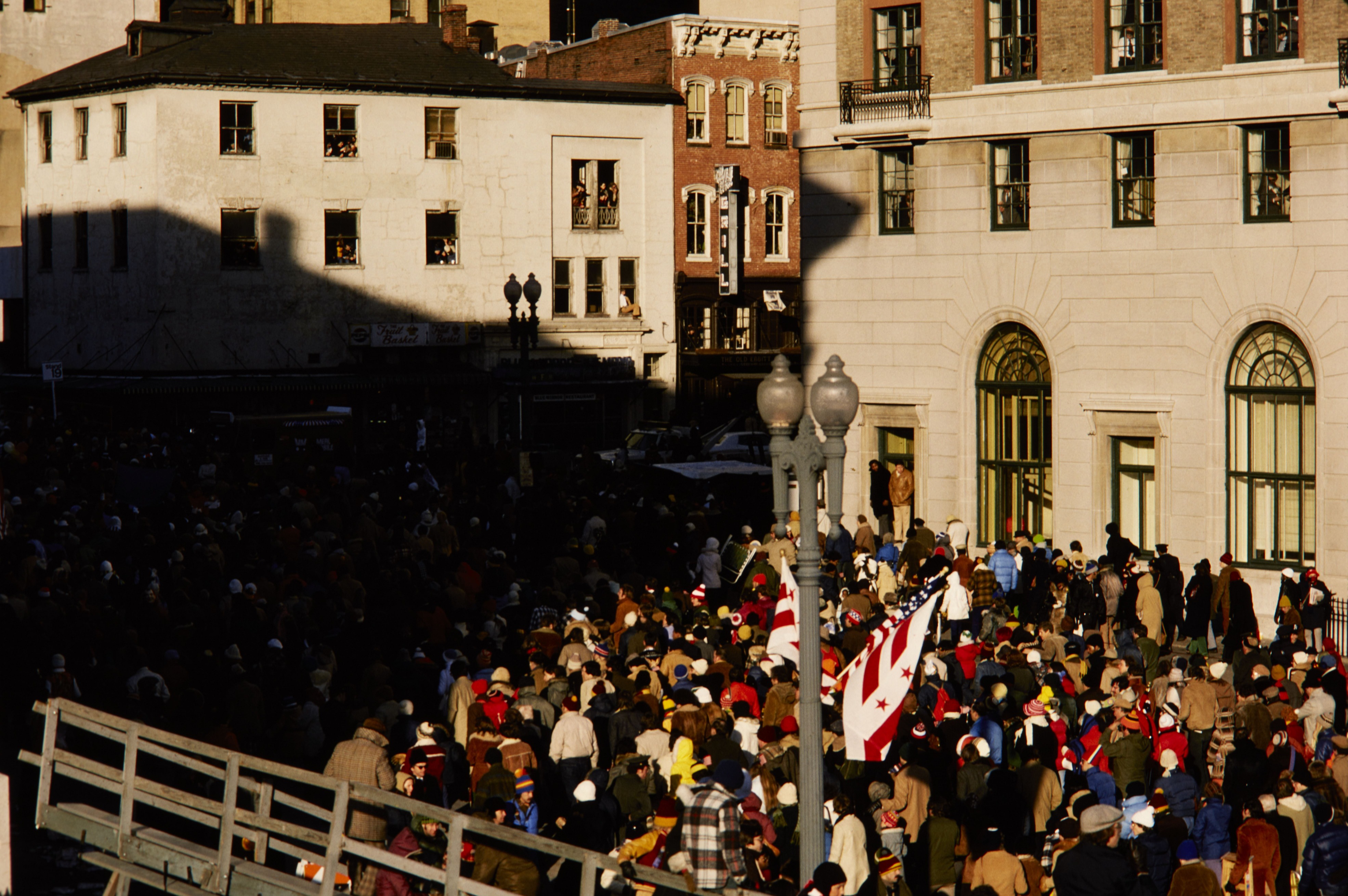 View of civilians walking 15th Street after President Jimmy Carter's Inaugural Parade in Washington, D.C.