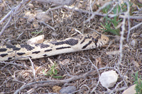 Gopher snakes (Pituophis catenifer) are nonvenomous constrictors. They are often confused for rattlesnakes, despite having no rattle and being nonvenomous. In fact, these large snakes are actually known to eat rattlesnakes. They also mimic rattlesnakes by flattening their heads and vibrating the tip of their tail when threatened, though it makes no noise.