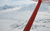 Aerial view of mountains in winter around the village of Anaktuvuk Pass