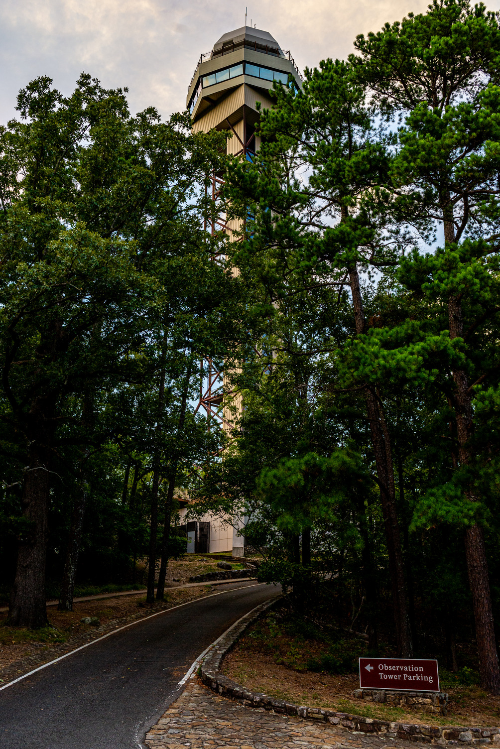 Visitors can hike or drive to the base of the Mountain Tower on top of Hot Springs Mountain.